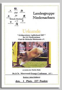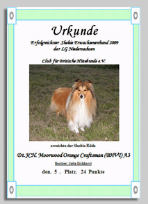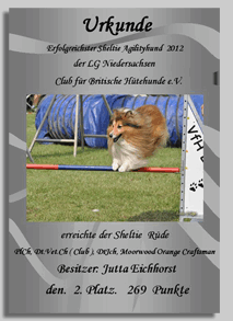 Nun hat sich Duks zu einem zauberhaften und selbstbewussten Sheltierüden entwickelt, der inzwischen auch schon Vater geworden ist, aber nach wie vor Spielen / Arbeiten über alles liebt. Das Leben auf dem Trainingsplatz bedeutet immer für ihn wieder neu „Fun, Fun.....“ (für mich natürlich auch). Sein Ideenreichtum, sein herrliches Temperament und sein umwerfender Charme machen ihn zu einem liebenswerten Partner.